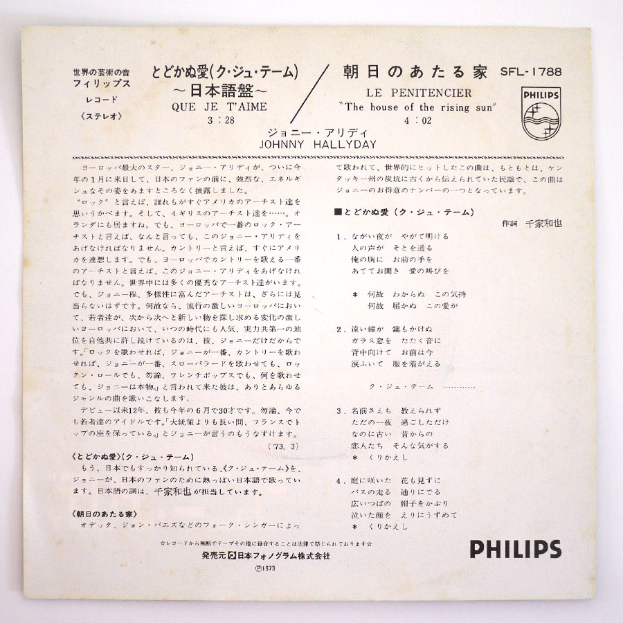 JOHNNY HALLYDAY – Que Je T’aime