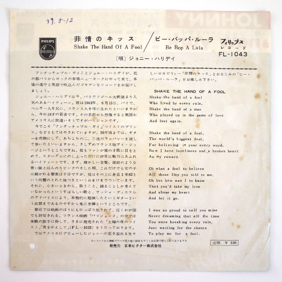 JOHNNY HALLYDAY – Shake The Hand of A Fool